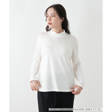 ハイネックにROCHAS Premiereのロゴ刺繍がさりげなく施された、長袖カットソー。シルケット加工を施すことで、シルクのような美しい艶と滑らかな表面感を実現いたしました。ソフトで柔らかく、優れた伸縮性も持ち合わせているため、快適な着心地をお楽しみいただけます。どんなトップスや羽織りのインナーとしても重宝し、幅広いコーディネートで活躍する便利な一枚です。ご自宅で手洗いできるウォッシャブル仕様なので、日常のお手入れも簡単。大人の女性のワードローブに上質さと快適さを添える、洗練されたインナーです。