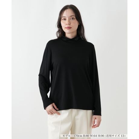 ハイネックにROCHAS Premiereのロゴ刺繍がさりげなく施された、長袖カットソー。シルケット加工を施すことで、シルクのような美しい艶と滑らかな表面感を実現いたしました。ソフトで柔らかく、優れた伸縮性も持ち合わせているため、快適な着心地をお楽しみいただけます。どんなトップスや羽織りのインナーとしても重宝し、幅広いコーディネートで活躍する便利な一枚です。ご自宅で手洗いできるウォッシャブル仕様なので、日常のお手入れも簡単。大人の女性のワードローブに上質さと快適さを添える、洗練されたインナーです。