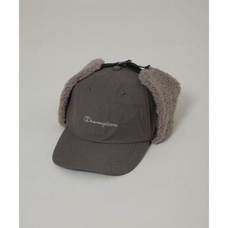 Championのロゴ刺繍の入ったタフタ素材とシープボアのアビエイターキャップ。ファッションとしてはもちろん、防寒としても活躍するアイテムです。