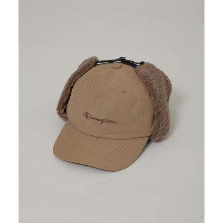 Championのロゴ刺繍の入ったタフタ素材とシープボアのアビエイターキャップ。ファッションとしてはもちろん、防寒としても活躍するアイテムです。