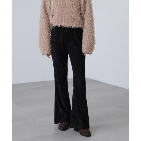楊柳加工が入ったストレッチ性のあるカットソーベロアのレギンスパンツ。ももから膝まではタイトめシルエット、膝下からフレアにしており、レイヤードスタイルのアクセントになります。ウエストはゴム仕様ですがアタリが出ないようすっきりとした仕上がり。一枚着ではなく、トレンドのミニ丈キャミワンピースやミニスカートとのレイヤード用として着用いただけます。ラップスカートやバンダナを腰巻にしてアクセントを付けても可愛いです。※モデルの着用画像の場合、光の当たり具合により、実際の色味と異なって見えることがございます。色味は、商品単体の画像をご参照ください。
