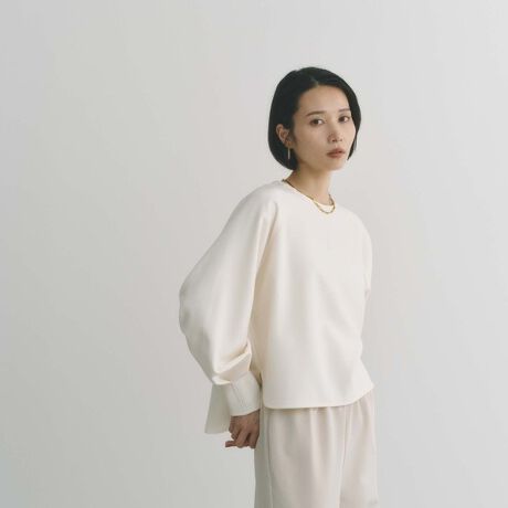 トレーナーライクなラグラン袖デザインが特徴のプルオーバートップス。肩のラインを自然に隠してくれるシルエットで、リラックス感がありながらも上品な印象に。