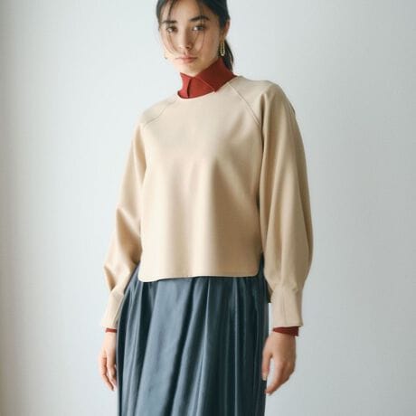 トレーナーライクなラグラン袖デザインが特徴のプルオーバートップス。肩のラインを自然に隠してくれるシルエットで、リラックス感がありながらも上品な印象に。