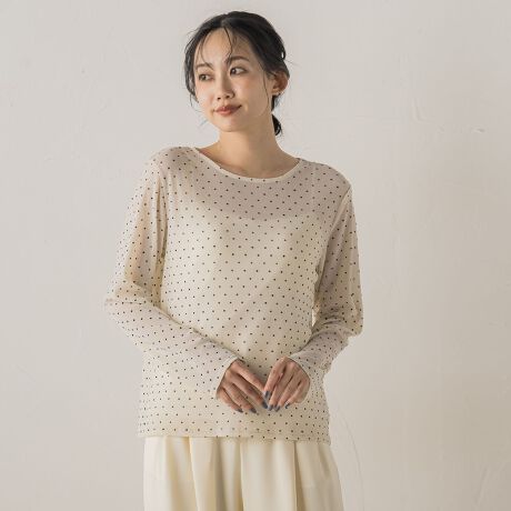 チュール素材に小さめのフロッキードットをプリントしたプルオーバー。