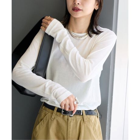 程よいシアー感で、体のラインを拾いすぎないので1枚でも様になり、インナーとして冬まで長く使えます!