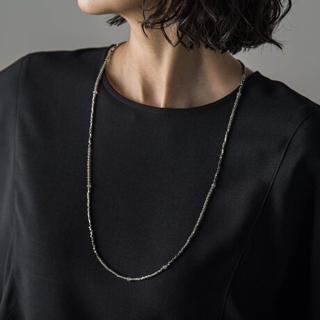 様々なビーズを組み合わせたさりげない煌めきが女性らしいネックレス。