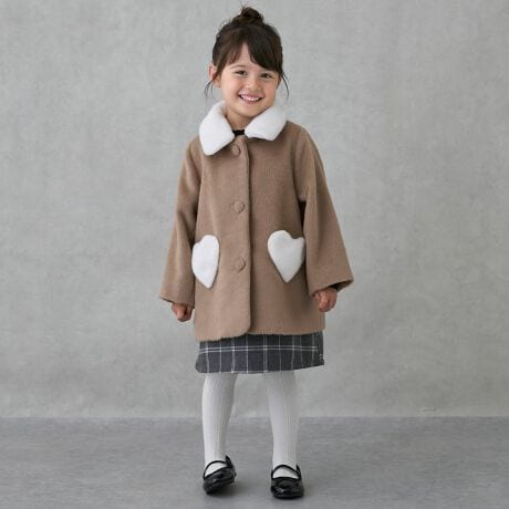 ハートのポケットが女の子らしい印象をぐっと引き立てます。