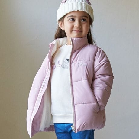 寒い季節のお出かけに重宝するあたたかい中綿入りのジャケットです。