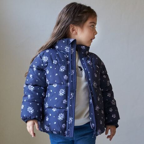寒い季節のお出かけに重宝するあたたかい中綿入りのジャケットです。