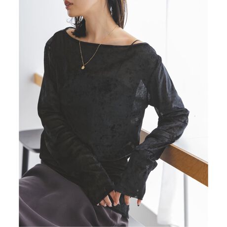 微かな透け感が楽しめる比較的薄手の素材ながらベロアならではの表情感がシーズンムードを高めてくれる一枚。