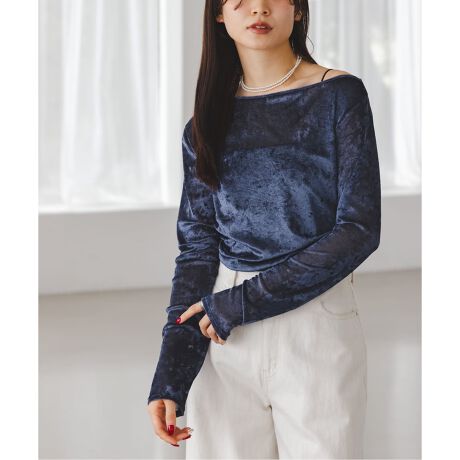 ラグジュアリーな雰囲気で高級感ただようベロア素材のカットソー。