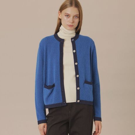 身頃はブークレヤーンで柔らかな印象に、前立てや裾、袖口は地柄編みを施したジャケットカーディガンです。ボトムを問わず汎用性高く着用いただけるアイテムです。同素材のフーディ(品番:G5N36623)もご用意しております。