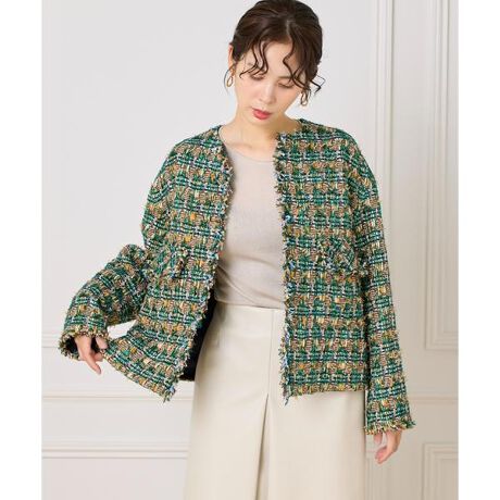 ■デザインきゅっと詰まったネックラインで顔まわりはすっきりとし、ゆとりのあるボディとドロップショルダーでリラックス感のあるバランスに。ポケットの、フリンジディテールが上品なアクセントに。前端に使用したグログランテープがシャープなアクセントになっています。エレガントスタイルだけでなく、カジュアルダウンした着こなしもおすすめ。コーディネートを華やかに彩ってくれる、大人のための上質なジャケットアイテムです。《LINTON/リントン》LINTON社は1900年代初頭に英国カンブリア地方で創業しました。100年以上にわたり、名だたるブランドに独自のTWEEDを届けてきた存在です。最大の特徴は、糸から自社で開発していること。ルレックスやペーパーヤーン、ポンポンヤーンなど、一見異素材と思える糸を大胆に掛け合わせ、織りで新しい景色を生み出します。・裏地あり・ポケットあり ■下げ札サイズ表記2=(M/9号)3=(L/11号)■サンプル撮影商品画像の商品はサンプルです。実際の商品とはサイズや色味、素材、デザイン等の仕様が若干変更になる場合がございます。■カラーについては、可能な限り実際の商品に近いカラーで撮影をおこなっておりますが、照明の関係により実際の製品とは色味が違って見える場合があります。またパソコン・スマートフォンなどの環境により、若干製品と画像のカラーが異なる場合もございます。現物と画像のカラー差異については返品理由となりませんので、予めご了承ください。■サイズ表記はあくまで目安となります。