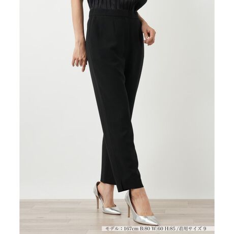 ウエスト回りはゆったり、裾に向かって細くなる絶妙なテーパードシルエットがこなれたムードを演出するパンツ。裾のスリットが足元に軽やかな抜け感をプラスします。後ろウエストはゴム仕様でリラックスした穿き心地ながら、前から見るとすっきり上品な印象に。気になる下半身を自然にカバーしつつ、美しいレッグラインを叶えます。オンオフ問わず活躍し、日々の着こなしを格上げしてくれる一本です。