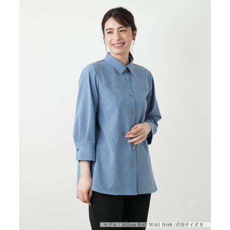 シンプルな無地でありながらも、軽やかなこなれ感をプラスするブラウス。バックにいれたタックがふわりとした優美なシルエットを演出し、どこから見ても抜かりないおしゃれを叶えます。やや伸縮性があるため、肩の力を抜いてリラックスして着用いただけます。七分袖は手首を華奢に見せる効果があり、ブレスレットなどのアクセサリーも映えるデザイン。季節の変わり目に重宝する袖丈で、一枚でサマになります。
