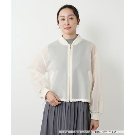 軽やかな透け感が上品なシアージップブルゾン。初秋にぴったりのやや薄手素材で、伸縮性があり着心地も快適です。エアリーな袖の透け感が女性らしい抜け感を演出し、シンプルなデザインながら存在感を放ちます。裾のドローコードでシルエットを自在に調整できるため、スタイリングに合わせたメリハリのある着こなしが可能。飾りポケットデザインでアクセントをつけ、きれいめからカジュアルまで幅広いシーンで活躍します。季節の変わり目に重宝する、軽やかさと華やかさを兼ね備えた一枚です。