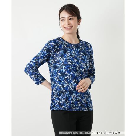 小花柄のモチーフが散りばめられ、一枚で着こなしを華やかに彩るカットソー。薄手で軽やかな生地は程よい抜け感を演出し、涼やかな着心地をキープ。すっきりとしたシルエットでボディラインに優しくフィットし、ストレスフリーな着用感を実現します。クルーネックと七分丈のスリーブは上品な印象を与え、季節の変わり目にぴったりのデザイン。カジュアルなデニムやパンツにはもちろん、きれいめなスカートと合わせれば、大人のフェミニンルックが完成します。