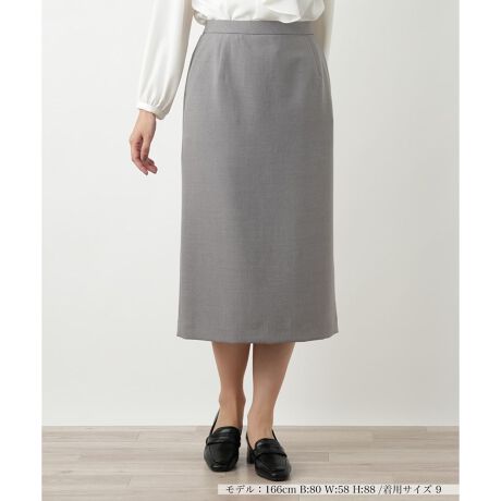 美しいIラインシルエットで、スタイルアップを叶えるミモレ丈のタイトスカート。腰高に見せるハイウエスト設計が、すっきりとした洗練された立ち姿を演出します。表地はもちろん、裏地にもストレッチの効いた素材を使用し、タイトながらも窮屈感のない快適な穿き心地を実現。後ろ裾のボックスタックで足さばきも軽快です。ブラウスやニットを合わせるだけで、オフィスに映える上品なスタイリングが完成します。