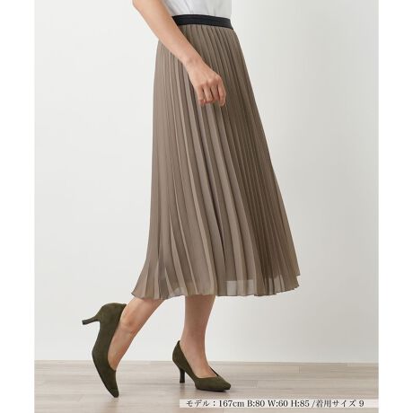 歩くたびに優雅に揺れる、繊細なプリーツが目を惹くスカート。縦のラインを強調するプリーツが、広がりすぎず、すっきりとした美しいシルエットを描き出します。ウエストはゴム仕様で、穿き心地はストレスフリー。トップスをインした際に覗くラメ混のベルトが、さりげないアクセントとして着こなしを引き締めます。軽やかながら安心の裏地付きで、秋のコーディネートの主役になる一枚です。