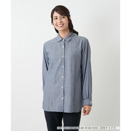 異なる二つのデザインが楽しめる、リバーシブル仕様のシャツブラウス。表側はクリーンで知的な印象のストライプ柄、裏側は秋らしいシックなタータンチェック柄です。その日の気分やコーディネートに合わせて、お好みで着こなしが楽しめます。ゆったりとしたシルエットと、後ろ身頃のギャザーが、リラックス感と女性らしい柔らかな雰囲気を演出。一枚で着るのはもちろん、軽い羽織りとしても活躍する、着回し力抜群のアイテムです。