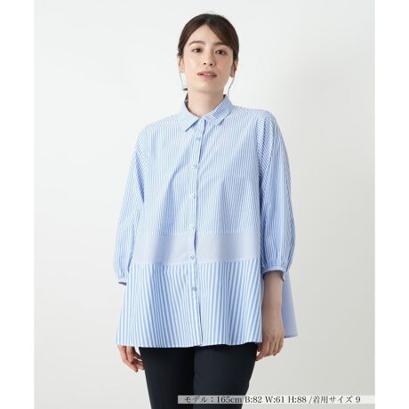 マルイウェブチャネル   /   レリアン   /   トップス   /   ブラウス   /   ストライプ切替ブラウス【MUSE BY ROCHAS Premiere】