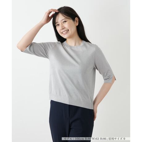 シンプルを極めた、着回し力抜群のクルーネックニット。滑らかで上品な光沢感のある生地が、カジュアルな中にきれいめな印象をプラス。クロップドスリーブの袖口にはスリットをあしらい、さりげないアクセントに。手首を覗かせることで、女性らしい抜け感も演出します。一枚での着こなしはもちろん、ジャケットのインナーとしてもかさばらずロングシーズン活躍。ワードローブの頼れるアイテムとして、色違いで揃えるのもおすすめです。