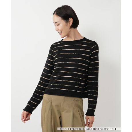 フレンチシックな着こなしの主役になれる、定番のボーダーニット。かすれたようなニュアンスのあるボーダーと、ざっくりとした編地がこなれた雰囲気を演出。顔周りをすっきりと見せる上品なボートネックもポイント。やや厚手ながらも軽やかな着心地で、秋口のメイントップスとして活躍。デニム合わせのカジュアルスタイルから、きれいめスカートとのコーディネートまで幅広く楽しめます。
