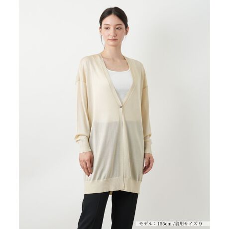 繊細なラメの輝きが、いつものスタイルを上品に格上げしてくれるロングカーディガン。縦のラインを強調するシルエットと丈感が、気になる腰回りやヒップをさりげなくカバーし、全身をすっきりと見せてくれます。フロントは1つボタン留めで着こなしに程よいアクセントをプラス。伸縮性のあるやや薄手のニットは、軽やかでストレスフリーな着心地を実感できます。さらに繊細な透け感が、重くなりがちな秋の装いに抜け感を演出。