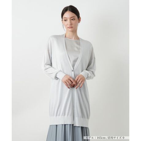 繊細なラメの輝きが、いつものスタイルを上品に格上げしてくれるロングカーディガン。縦のラインを強調するシルエットと丈感が、気になる腰回りやヒップをさりげなくカバーし、全身をすっきりと見せてくれます。フロントは1つボタン留めで着こなしに程よいアクセントをプラス。伸縮性のあるやや薄手のニットは、軽やかでストレスフリーな着心地を実感できます。さらに繊細な透け感が、重くなりがちな秋の装いに抜け感を演出。