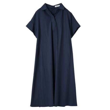抜け感のあるスキッパーネックでデザインされた、ゆったりとしたAラインシルエットのワンピース。スタイルを選ばず一枚でサマになり、カジュアルなコーディネートをフェミニンかつ上品に彩ります。フロントは比翼仕立てでボタンを隠してクリーンな印象に。後ろもボタンで開閉できる仕様なので着脱もスムーズに行えます。やや薄手のコットンブレンド生地のため肌当たりもよく、軽やかに着用いただけます。