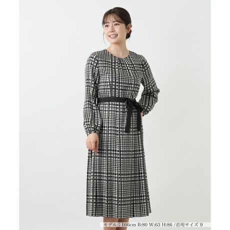 上品なグレンチェック柄が映える、タウンユースにぴったりのワンピース。落ち感のあるポリエステルサテン素材を使用し、歩くたびに優雅なドレープを描きます。脇にはプリーツ加工が施され、デザインのポイントに。付属のベルトでウエストマークをすれば、さらに洗練された印象に。長袖のノーカラー丸首デザインで、一枚で着映えする上品な装いが完成します。ご自宅で手洗い可能なウォッシャブル仕様も嬉しいポイントです。