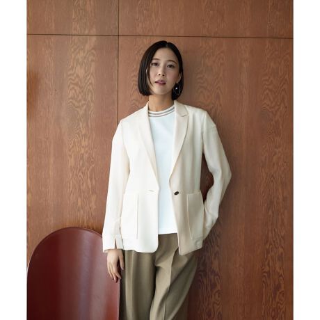 さらりと羽織れてきちんと見えが叶う、軽やかなブレザージャケット。ほどよくゆとりのあるシルエットとヒップにかかる着丈が、体のラインを拾わず、自然とバランス良く整えてくれます。袖口にはスリット入りで、折り返した着こなしもおすすめ。ポケット付きで実用性もありながら、シンプルで洗練されたデザインが魅力。ご自宅で手洗い可能なウォッシャブル仕様なのも、日常使いにうれしいポイント。初秋のオン・オフ兼用羽織りとして活躍します。