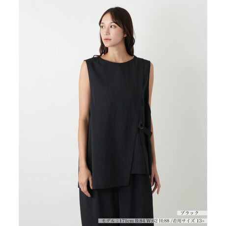 美しいカッティングとアシンメトリーなデザインが洗練されたスタイルを叶えるベスト。ベルトでシルエットに変化をつければ、着こなしの幅もぐっと広がります。やや薄手の生地は軽やかで、適度な透け感があるため、レイヤードルックをより一層楽しめます。同素材のアイテムと合わせたセットアップで、よりモードなコーディネートもおすすめ。Tシャツやブラウスに重ねるだけで、いつもの装いがワンランク上のこなれた印象に変わります。ご自宅で手洗い可能なのでお手入れも簡単。