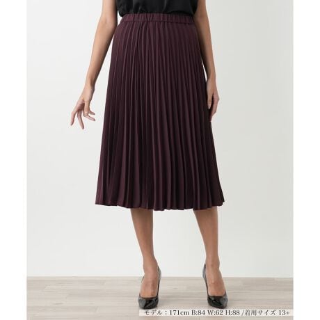 繊細なプリーツがしなやかに揺れる、上品な佇まいのスカート。縦ラインを強調するプリーツが広がりすぎず、すっきりとした美しいシルエットを演出。ウエストはゴム仕様なので、見た目のエレガントさとは裏腹に穿き心地はストレスフリー。同素材のジャケットと合わせれば、きちんと感のあるセットアップも楽しめます。オンオフ問わず着回せる、大人のための華やかな一枚です。