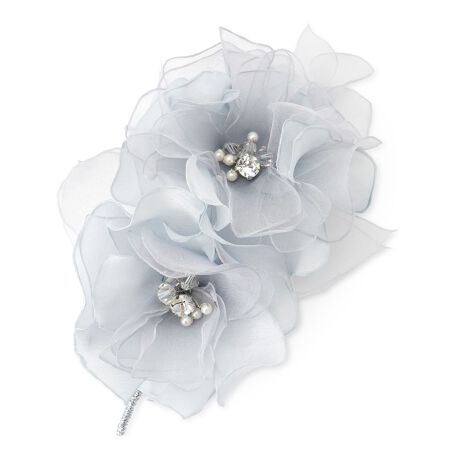 繊細なシルクオーガンジーを贅沢に重ねて作られた、美しいコサージュ。ふんわりとした透明感と軽やかさを備え、光をまとうたびに表情を変え、優美な輝きを放ちます。幾重にも重ねられた花びらは、まるで本物の花が咲き誇るような立体感と息をのむほどの繊細さを表現しています。中央にはクリスタルがあしらわれ、上品な煌めきのアクセントを添えています。卒業式や入学式、結婚式といったフォーマルなシーンでのスーツやドレスの胸元を格上げします。