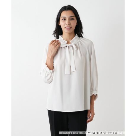 上質な無地素材で仕立てた、洗練された印象のブラウス。七分袖とこだわりの襟元が、上品なスタイルを軽やかに演出します。ご家庭での手洗いが可能なウォッシャブル仕様で、お手入れのしやすさも魅力。ビジネスシーンから普段使いまで、様々な場面で活躍することでしょう。