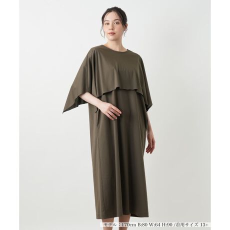 大人レディの洗練された着こなしを叶える、2wayワンピース。一枚で着用すればシンプルなノースリーブワンピースとして、付属のケープを纏えば、ドラマティックなシルエットへと変化します。ケープは取り外しが可能なので、その日の気分やシーンに合わせて自在にアレンジできます。ケープの裾はメロー始末で仕上げられており、細部にまでこだわりが光ります。ケープを外せばノースリーブのすっきりとしたIラインワンピースとして、軽快に着こなせます。デイリーカジュアルから、オフィス、ちょっとしたお出かけまで、多彩な場面で対応するアイテムです。