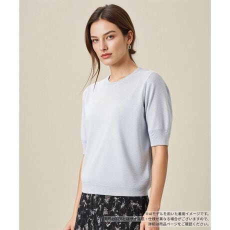 スパンコールを撚り合わせた糸で編み立てた、繊細な輝きが魅力のクルーネックニット。滑らかな肌触りのレーヨンブレンド素材は着心地も快適。程よくボディにフィットするすっきりとしたシルエットが、女性らしいラインを引き立てます。一枚で着て様になるのはもちろん、ジャケットやカーディガンのインナーとして、胸元にさりげない華やかさをプラスするのにもおすすめ。秋のコーディネートを格上げしてくれるトップスです。
