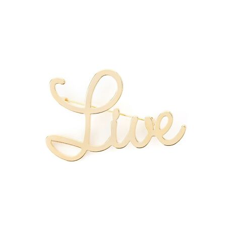 「Live(生きる、楽しむ)」というポジティブなメッセージをかたどったモチーフブローチ。日々を大切にしたいという想いを込めた、お守りのような存在になってくれそう。流れるような美しい筆記体のラインが上品なアクセントを添え、ジャケットやコートはもちろん、ニットやストール、帽子、バッグなどに手軽に取り付けるだけで、あなたらしいアレンジが楽しめます。ご自分用はもちろん、大切な方への贈り物にも最適なアイテムです。