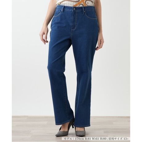 膝から裾へ緩やかに広がるラインが脚長効果を発揮するブーツカットデニムパンツ。製品洗いを施した柔らかな風合いに加え、伸縮性のあるウエストで、一日中ストレスフリーな穿き心地です。ウエスト内側にはロゴ刺繍をあしらい、こだわりを感じさせるデザインに。カジュアルなTシャツからヒールを合わせたきれいめな着こなしまで幅広く活躍。穿くだけでスタイルアップが叶う、ワードローブに欠かせない一本です。