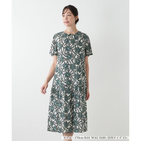 繊細なボタニカルプリントと、ふわりと揺れるシルエットが魅力のフレアワンピース。軽やかで伸縮性に優れたパワーネット素材で仕立てました。スカート部分の切り替えが優雅なドレープを生み出し、女性らしい柔らかなニュアンスを演出。気になる身体のラインを拾わないリラクシーな着心地が感じられる一枚です。シワになりにくく、旅行などにもおすすめです。