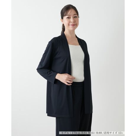 さっと羽織るだけで、着こなしをぐっとエレガントに格上げしてくれる羽織ブラウス。動くたびに美しく揺れる豊かなドレープが印象的。ワンピースやTシャツの上に一枚重ねるだけで、いつものコーディネートが新鮮な表情に変わります。生地には程よい伸縮性があり、長時間の着用でもストレスフリー。冷房対策から秋口のライトアウターまで、ロングシーズン活躍する一枚です。ご自宅で手洗いできる手軽さも嬉しいポイント。