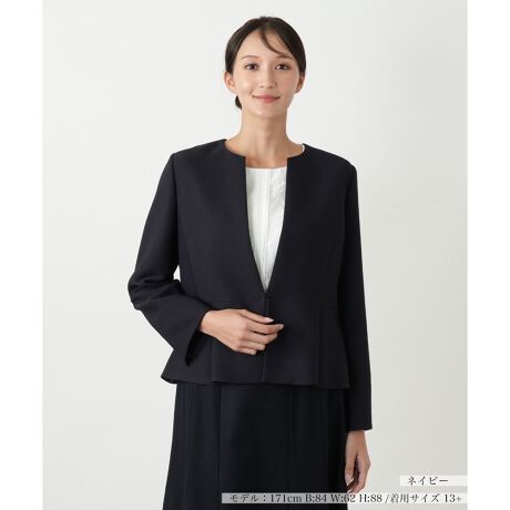 ライトオケージョンシーンにもおすすめの上品なジャケットです。無地のシンプルなデザインは、どんなインナーやボトムスとも合わせやすく、着回し力に優れています。長袖で、季節を問わず様々なシーンで活躍します。美しいシルエットが、着る人の品格を引き立て、洗練された印象を与えます。ご自宅で手洗いができる仕様のため、汚れを気にせず気軽にご着用いただけます。ビジネスシーンはもちろん、お食事会やちょっとしたお集まりにも最適な一着です。