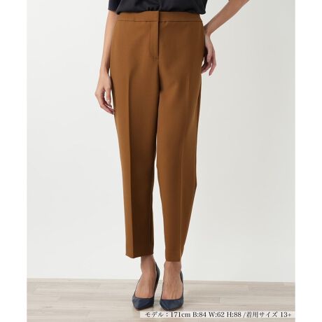 穿くだけでスタイリッシュな美脚を叶える、定番のテーパードパンツ。センタープレスが縦のラインを強調し、脚をまっすぐ綺麗に見せてくれます。ウエストはゴム仕様で心地よくフィットし、さらにストレッチ性抜群の生地できれい見えと快適な穿き心地を両立しました。オフィスから普段使いまで、シーンを選ばず活躍する大人のためのベーシックな一本です。