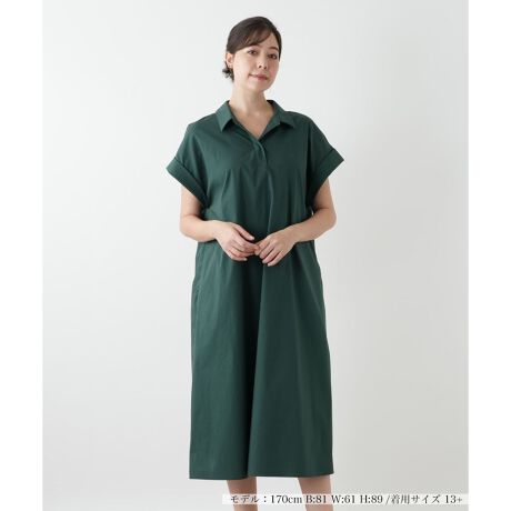身体のラインを拾わない、すとんと落ちるサックシルエットがリラックスした着心地を叶える襟付きワンピース。きちんと感のあるシャツカラーが、ラフになりすぎず、大人の日常着としての上品さをプラスします。背中のヨーク下にはギャザーを寄せて後ろ姿に柔らかな表情を添えるアクセントに。伸縮性のある生地で動きやすさも抜群。フロントは着脱しやすいスナップボタン仕様となっており、ウエスト左右にはスリットポケットをレイアウト。一枚でさらりと着るのはもちろん、ベルトでウエストマークした着こなしもおすすめ。