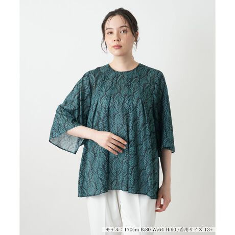 エキゾチックなボタニカル柄が目を惹く、主役級のブラウス。動くたびに優雅に揺れるふわりとしたAラインシルエットが、気になる身体のラインをさりげなくカバーしてくれます。軽やかな薄手の素材と上品な透け感がコーディネートに抜け感をプラス。背中のファスナーが着脱のしやすさと、すっきりとした後ろ姿を両立。シンプルな無地のパンツやスカートを合わせるだけで、洗練されたスタイリングが即座に完成します。ご自宅で手洗いできる手軽さも嬉しいポイント。