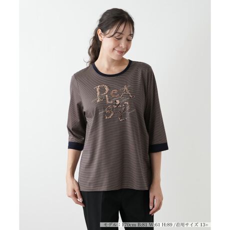 初秋のデイリールックに、遊び心と輝きを添えるボーダーカットソー。定番のボーダーを背景に、胸元には繊細な刺繍と光を受けてきらめくスパンコールで、メッセージ性のあるロゴモチーフがあしらわれています。着心地もよくしなやかにボディラインにフィットし、ストレスフリーな快適性を実現。季節の変わり目にぴったりの軽やかな素材感が魅力です。カジュアルなデニムやパンツにはもちろん、きれいめなスカートと合わせれば、上品な大人カジュアルスタイルが完成します。