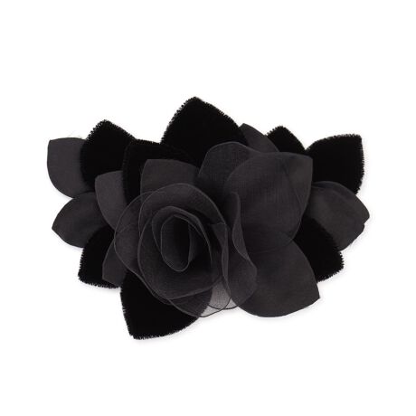 セレモニーの装いを、より一層華やかに引き立てるエレガントなコサージュ。ベルベットのような光沢のある花びらと、透け感のあるオーガンジーの花びらを丁寧に重ね、立体感豊かに仕上げました。深みのあるシックなカラーが、大人の女性らしい上品さと落ち着きを演出。ジャケットやワンピースの胸元に添えるだけで、コーディネートがぐっと格調高い印象になります。大切な一日を美しく彩る、とっておきのアイテムです。