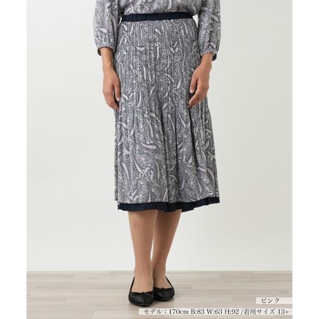 クラシカルな柄と、着回し力の高い無地の一枚で二役をこなす、リバーシブル仕様のスカート。全体に施された繊細なプリーツが縦のラインを演出し、動くたびに優雅な表情を見せてくれます。裾の軽やかなメロウ仕上げも、さりげない女性らしさを添えるポイント。ウエストは総ゴム仕様でストレスフリーな穿き心地です。その日の気分で印象を変えられる、秋のコーディネートの幅をぐっと広げてくれるアイテムです。