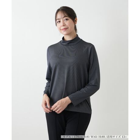 【ウォッシャブル】ミジンコボーダー ハイネックカットソー